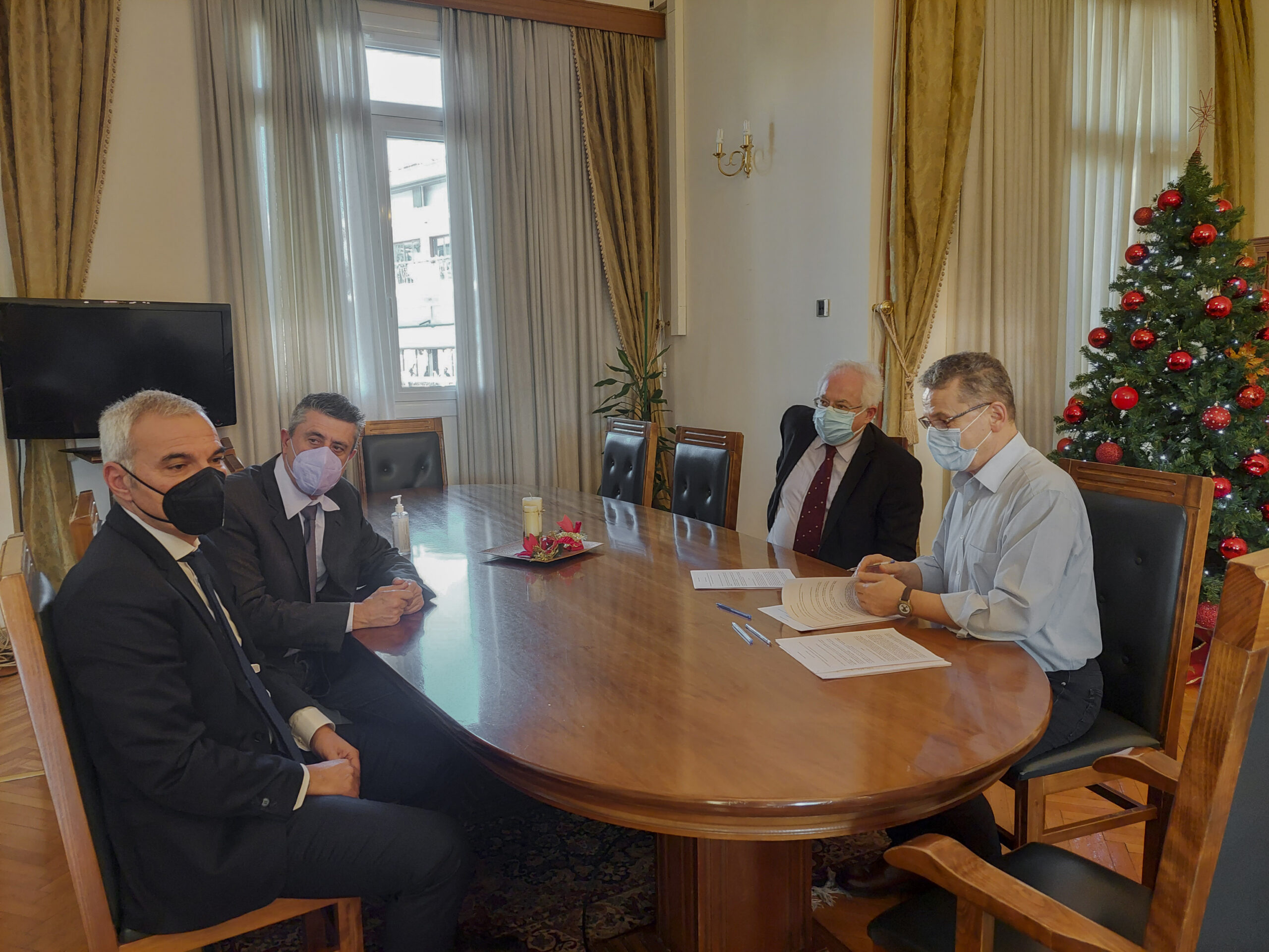 Το σύμφωνο συνεργασίας υπέγραψαν ο Δήμαρχος Κοζάνης, Λάζαρος Μαλούτας, καθώς και ο Κοσμήτορας, Καθηγητής, Κυριάκος Υάκινθος ως εκπρόσωπος της Πολυτεχνικής Σχολής του Α.Π.Θ., όπως και ο Κοσμήτορας, Καθηγητής Παναγιώτης Γκλαβίνης ως εκπρόσωπος της Νομικής Σχολής του Α.Π.Θ., την Τετάρτη 5 Ιανουαρίου 2022, στο Γραφείο Δημάρχου.